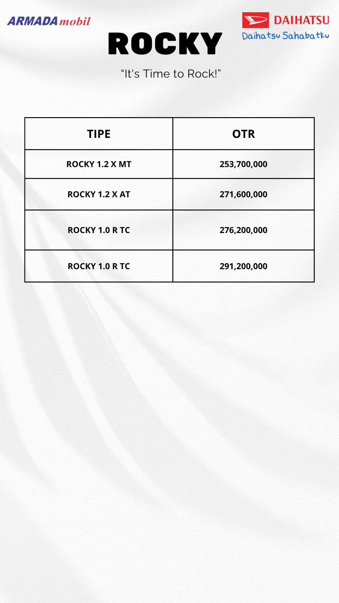 SUV dengan platform DNGA (Daihatsu New Global Architecture), memberikan tampilan yang agresif & sporty serta kenyamanan yang lebih baik untuk sahabat keluarga muda Indonesia